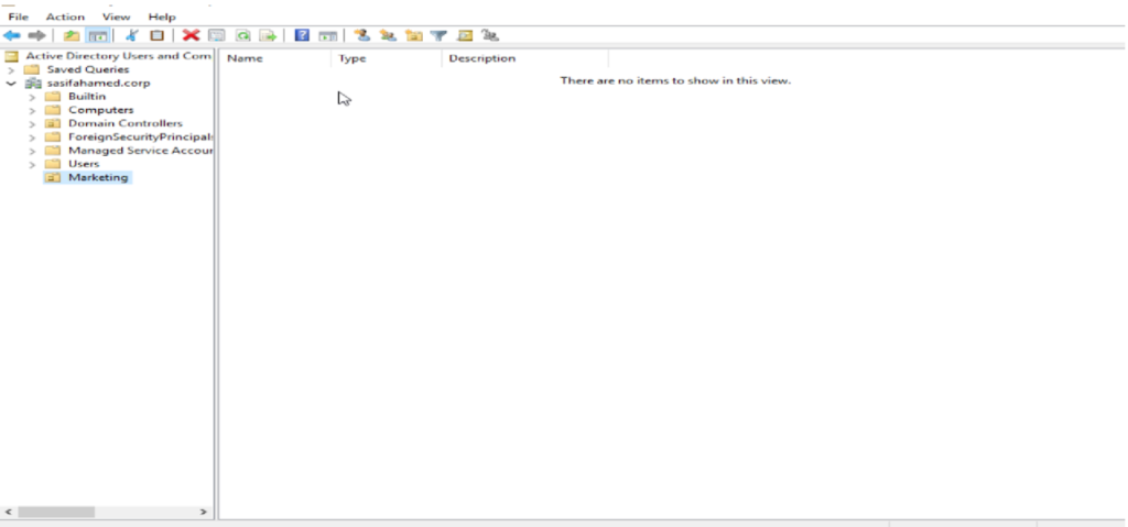 I first created a special folder in Active Directory called an Organizational Unit (OU) named “Marketing”.