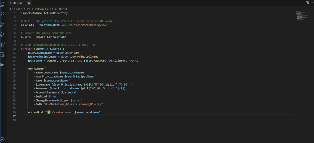 By including these attributes in the CSV, we can efficiently automate the process of adding users to Active Directory while maintaining consistency and accuracy.